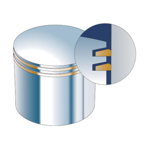 Anéis de pistão trapezoidais especiais empregam um desenho exclusivo que proporciona mais potência ao eixo de manivelas com menos perda de energia. Os anéis também aumentam a eficácia da combustão, oferecem maior durabilidade, reduzem o consumo de combustível, e diminuem a possibilidade de emperramento dos anéis.